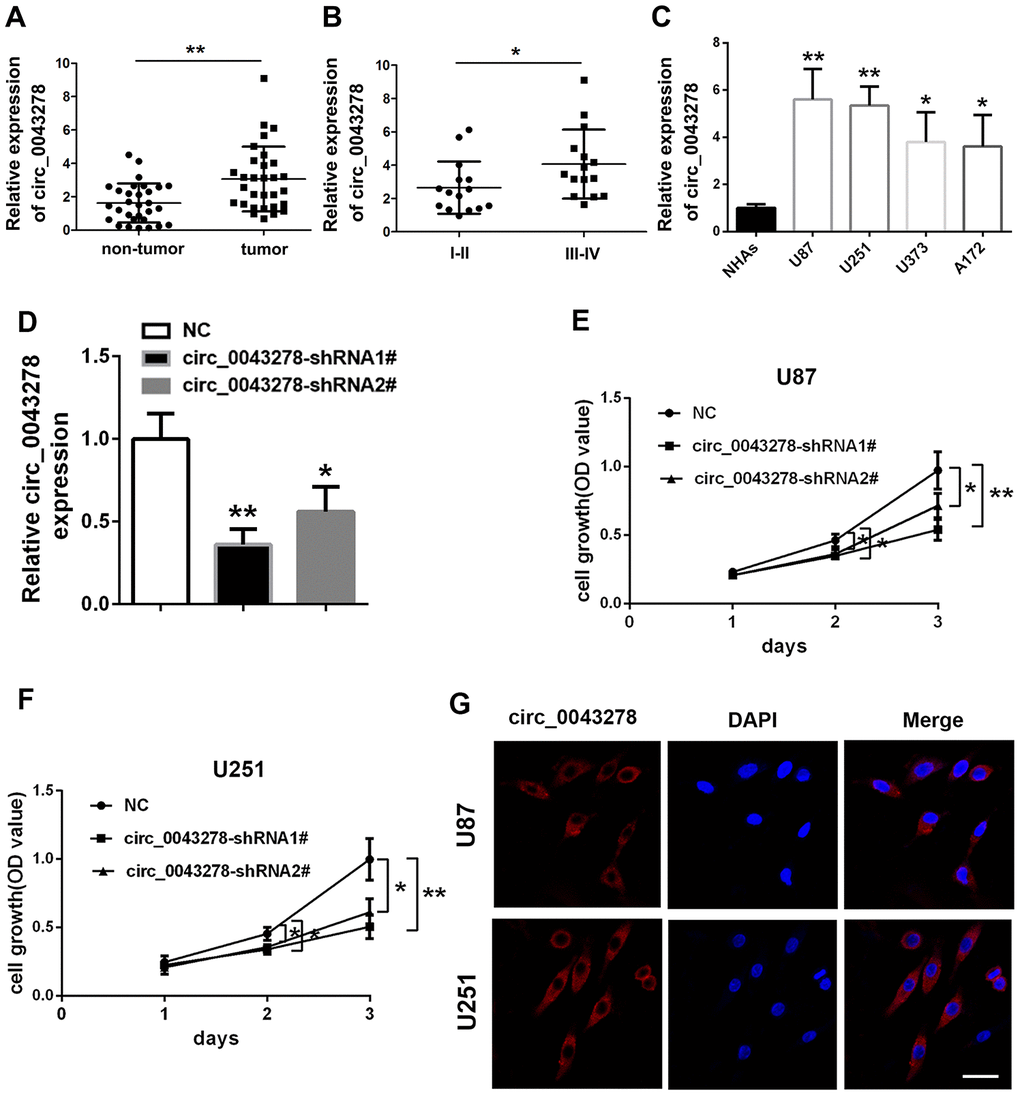 Circ_0043278 is highly expressed in glioma cell lines and tissues while circ_0043278 downregulation inhibits glioma cell growth, migration and invasion