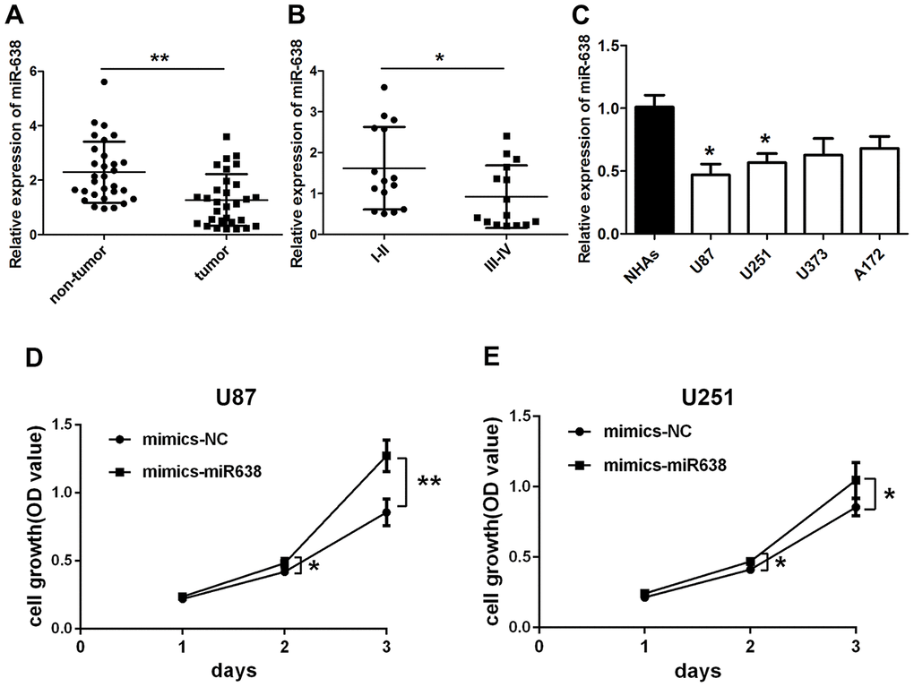 MiR-638 is downregulated in glioma tissues while miR-638 overexpression promotes glioma cell growth, migration and invasion