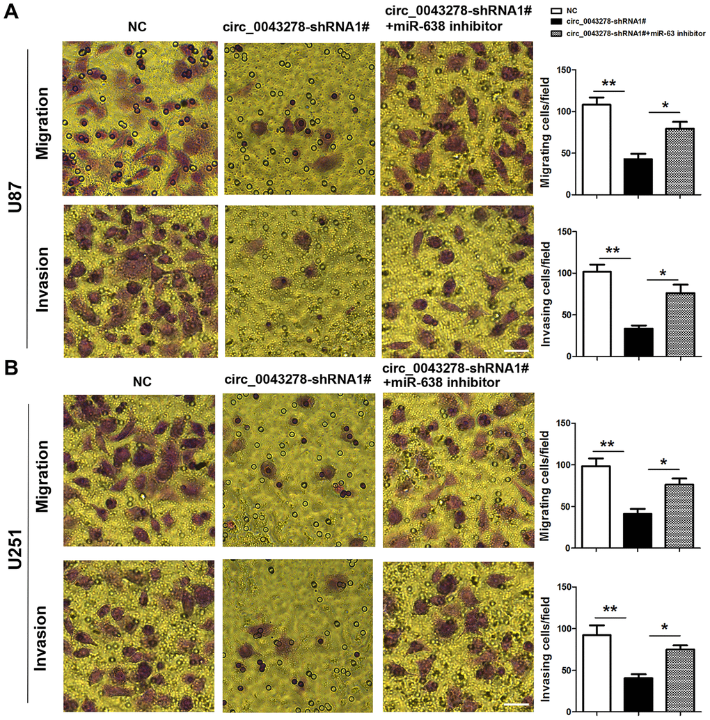 MiR-638 inhibitor reverses cell migration and invasion induced by circ_0043278 silencing
