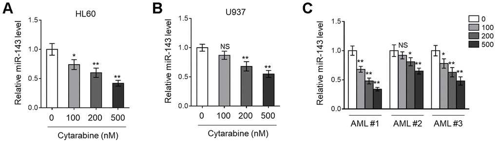 miR-143 expression is decreased in cytarabine-treated AML cells