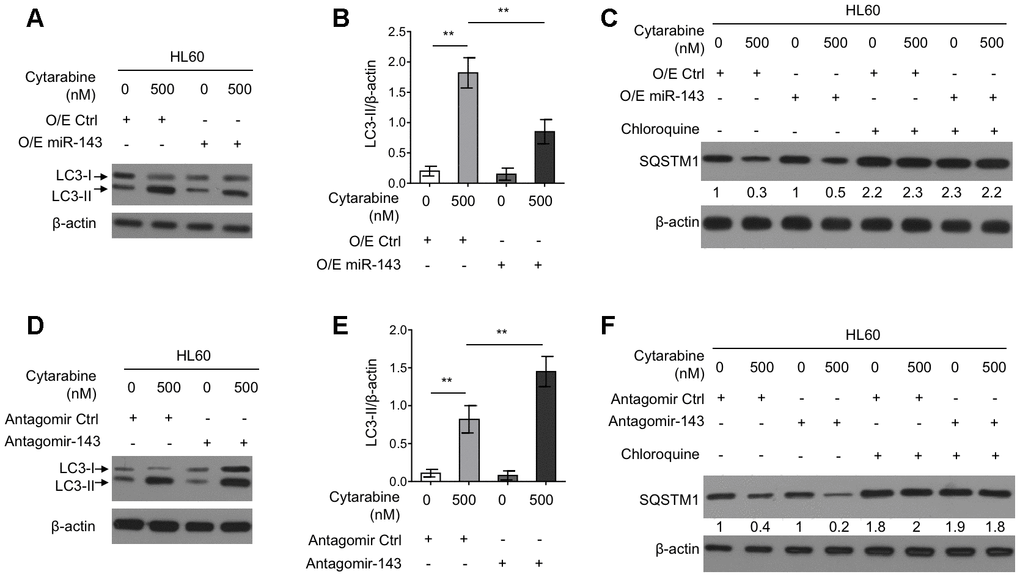 miR-143 inhibits autophagy in cytarabine-treated HL60 cells