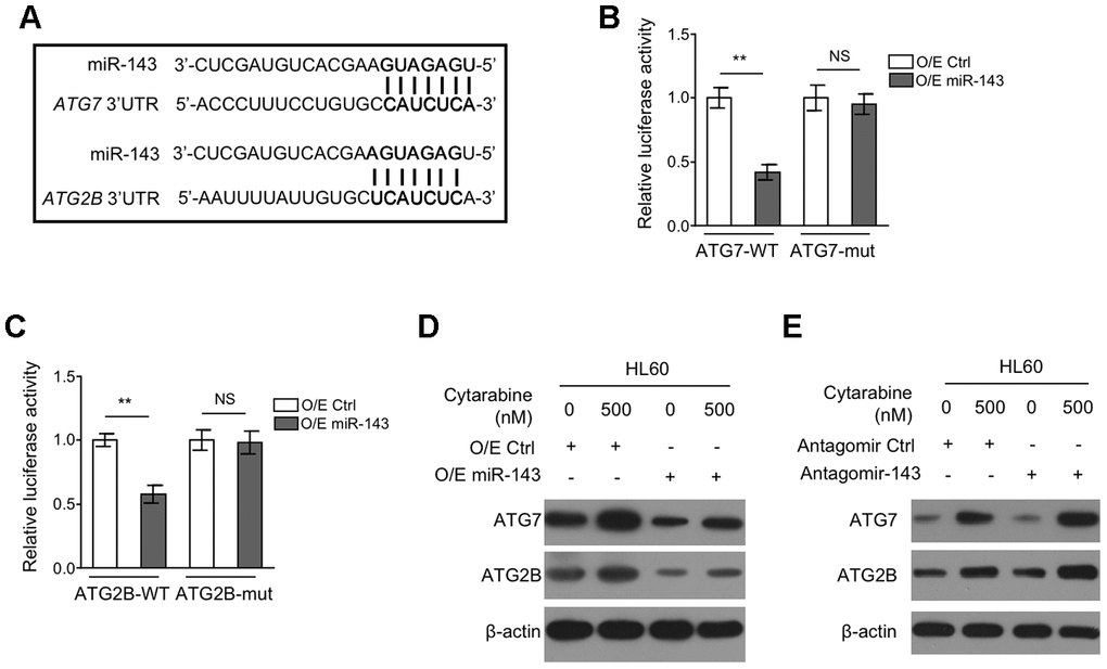 miR-143 directly targets ATG7 and ATG2B in HL60 cells