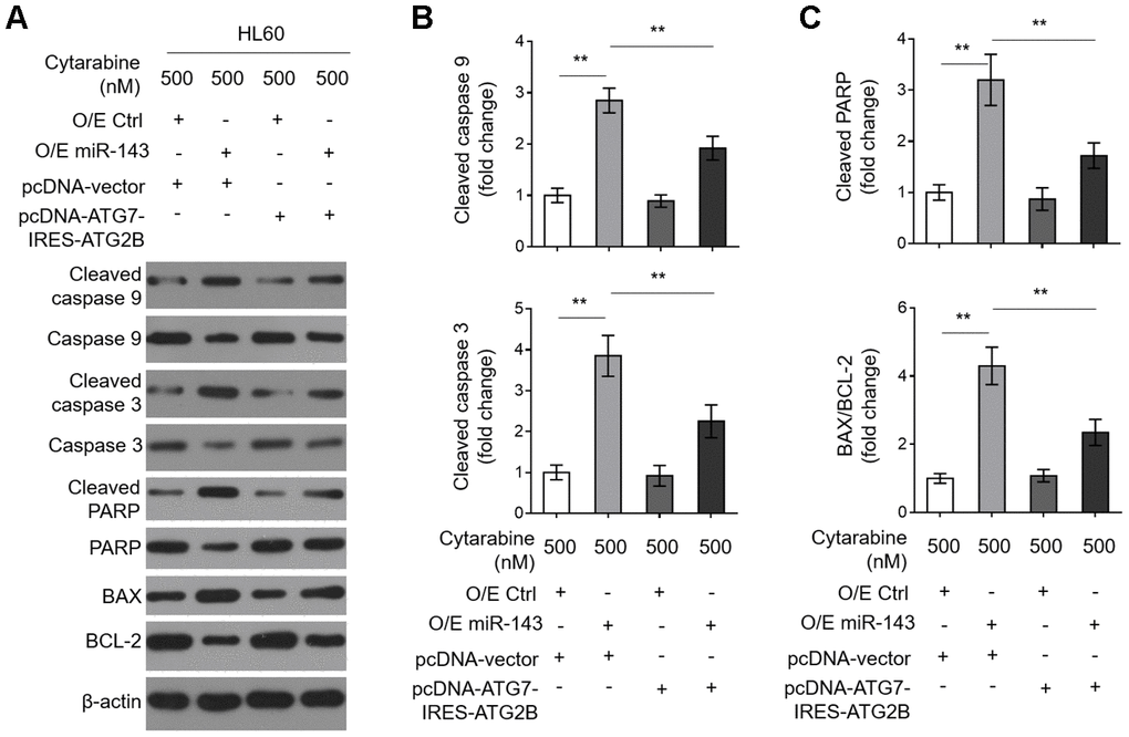 Decreases in ATG7 and ATG2B contribute to miR-143-promoted caspase-dependent apoptosis in cytarabine-treated HL60 cells