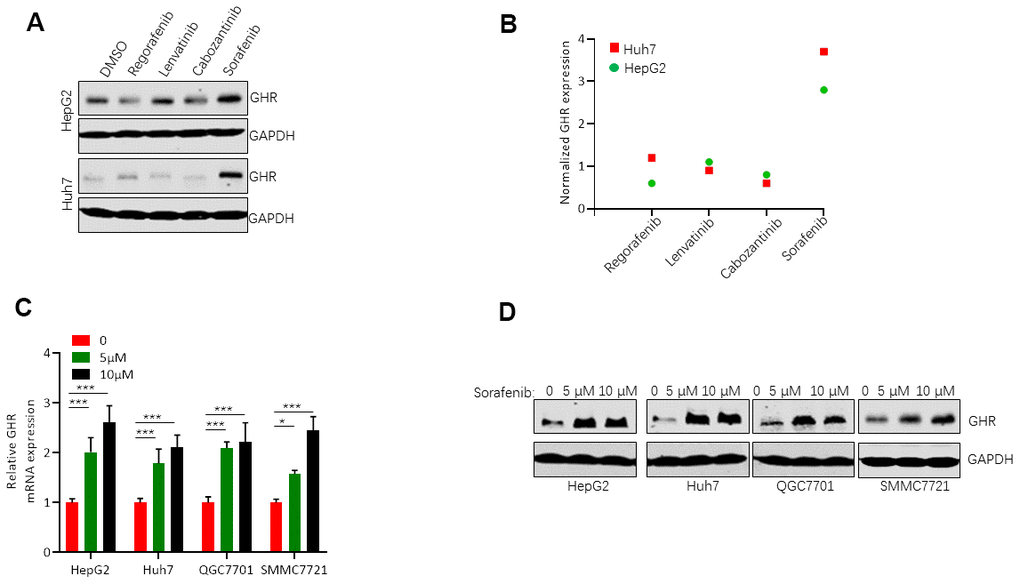 Sorafenib induced the increase of GHR in HCC cell lines
