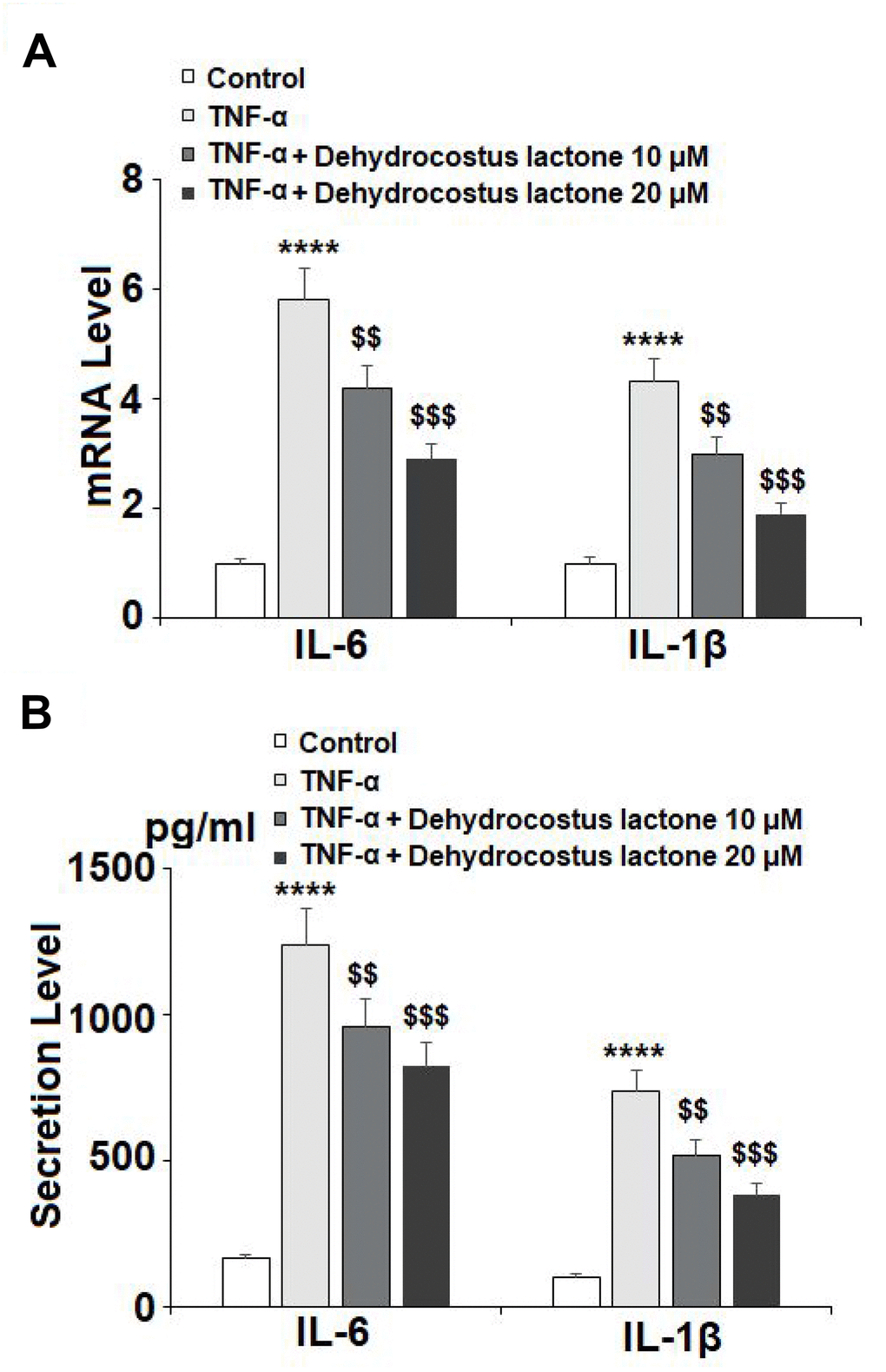 DHC prevented TNF-α-induced expression and secretion of IL-6 and IL-1β