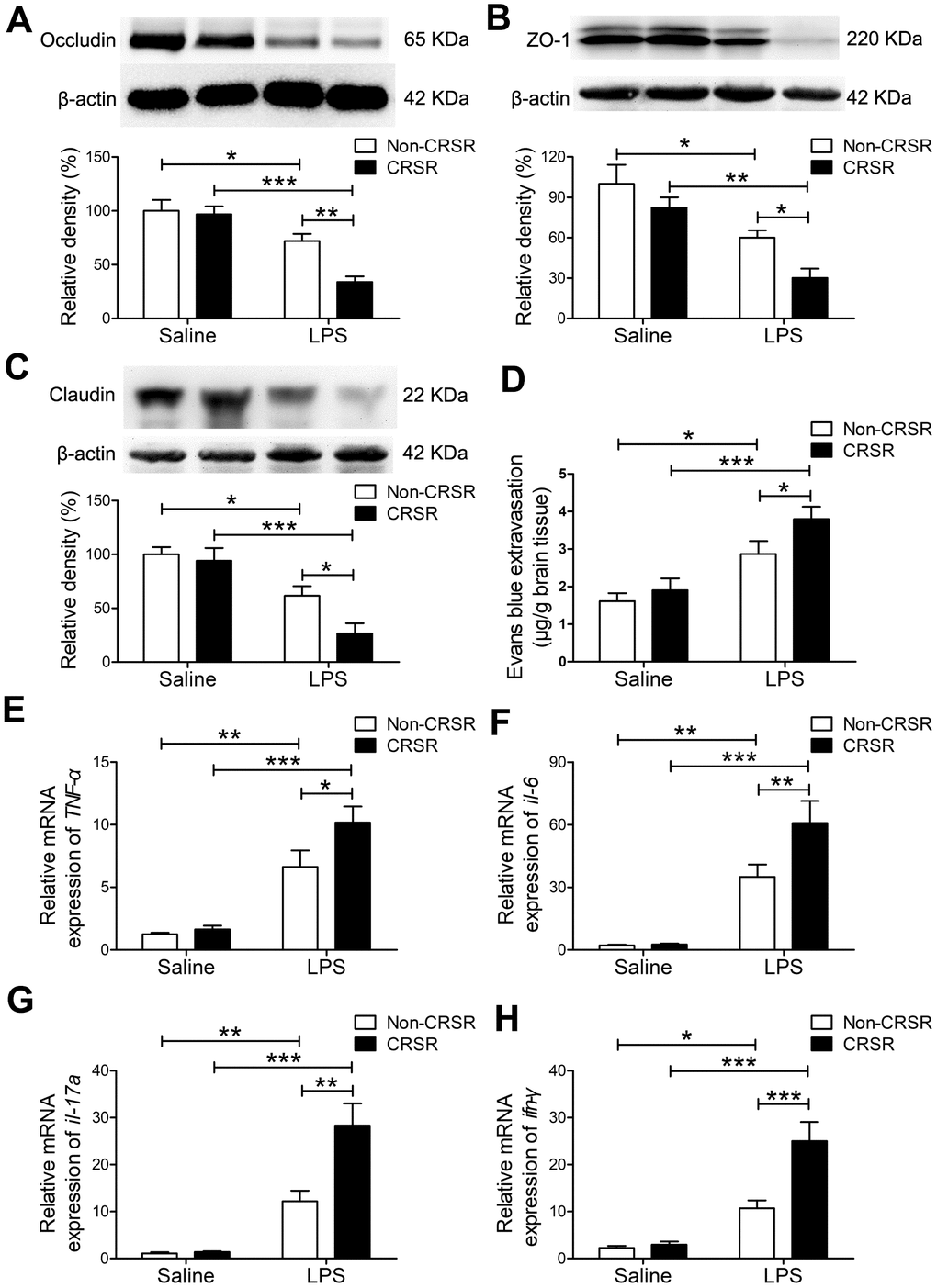 CRSR exacerbated LPS-induced increase in BBB disruption and hippocampal proinflammatory cytokine levels