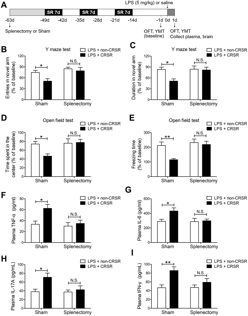Splenectomy blocked the enhancing effects of CRSR on LPS-induced increase in hippocampal proinflammatory cytokines
