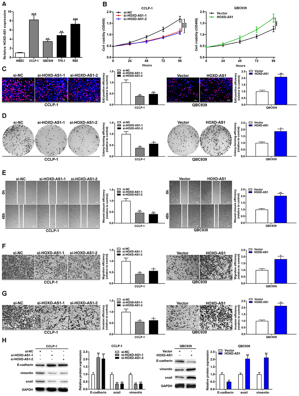 HOXD-AS1 promoted CCA cell proliferation, migration, invasion and EMT