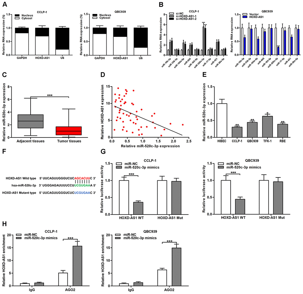 HOXD-AS1 served as a sponge of miR-520c-3p in CCA