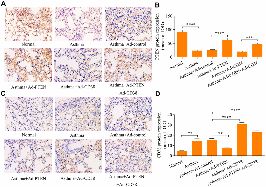 PTEN and CD38 expression within the lung tissue of asthmatic mice