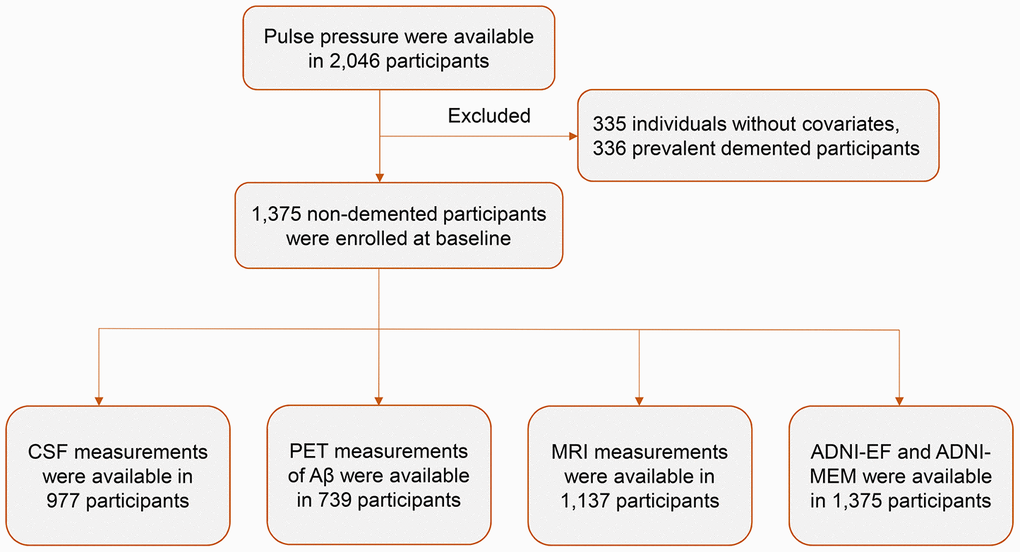 Jr , Bennett DA, Blennow K, Carrillo MC, Dunn B, Haeberlein SB, Holtzman DM, Jagust W, Jessen F, Karlawish J, Liu E, Molinuevo JL, Montine T, et al, and Contributors. NIA-AA research framework: toward a biological definition of Alzheimer’s disease. Alzheimers Dement. 2018; 14:535–62. https://doi.org/10.1016/j.jalz.2018.02.018 [PubMed] - 8. Nation DA, Edland SD, Bondi MW, Salmon DP, Delano-Wood L, Peskind ER, Quinn JF, Galasko DR. Pulse pressure is associated with Alzheimer biomarkers in cognitively normal older adults. Neurology. 2013; 81:2024–27. https://doi.org/10.1212/01.wnl.0000436935.47657.78 [PubMed]