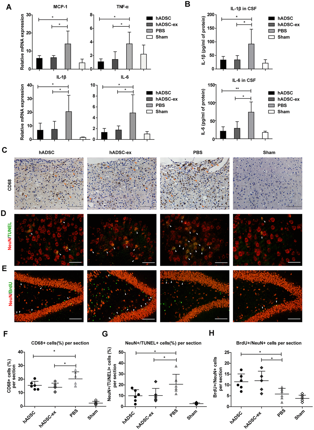 Intracerebroventricular administration of hADSC-ex inhibited neuroinflammation, reduced neuronal apoptosis and promoted hippocampal neurogenesis