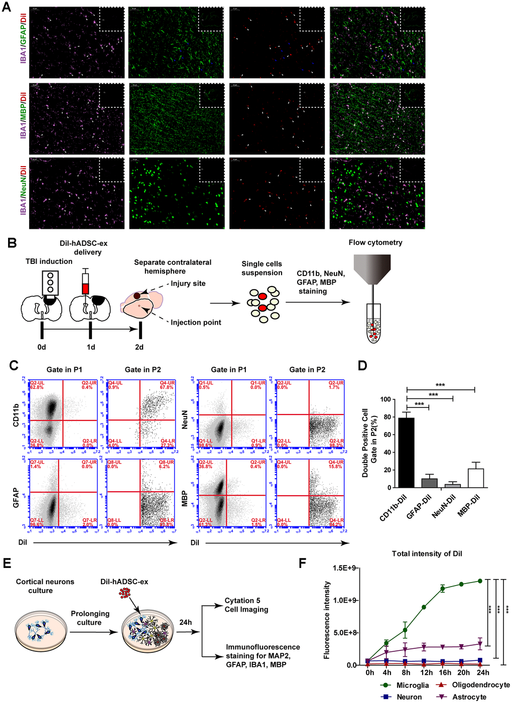 hADSC-ex were mainly taken up by microglia/macrophages in vitro and in vivo