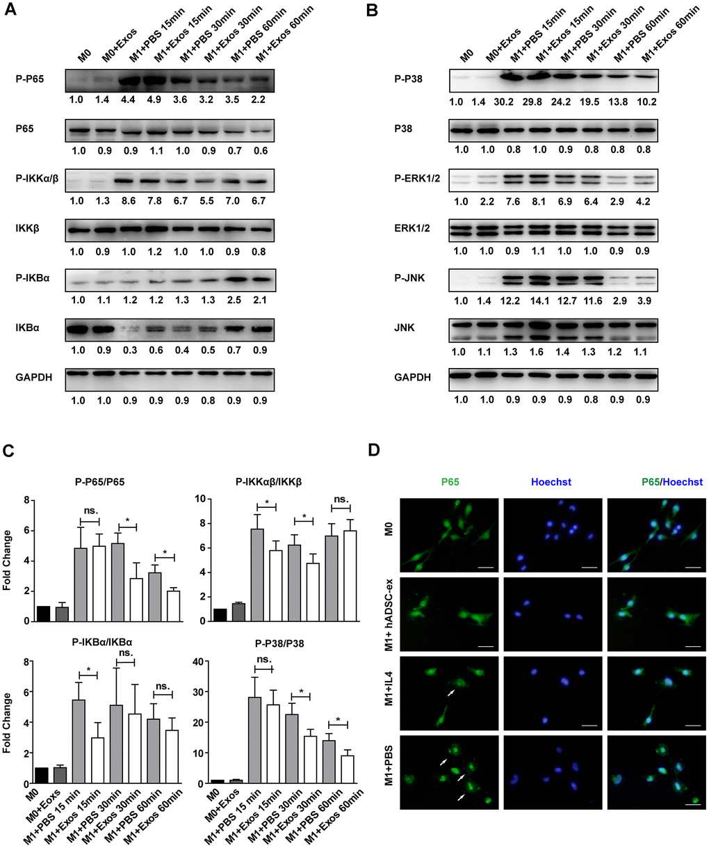 hADSC-ex inhibited microglia/macrophage activation by suppressing classical nuclear factor (NF)-kB and mitogen-activated protein kinase (MAPK) signaling