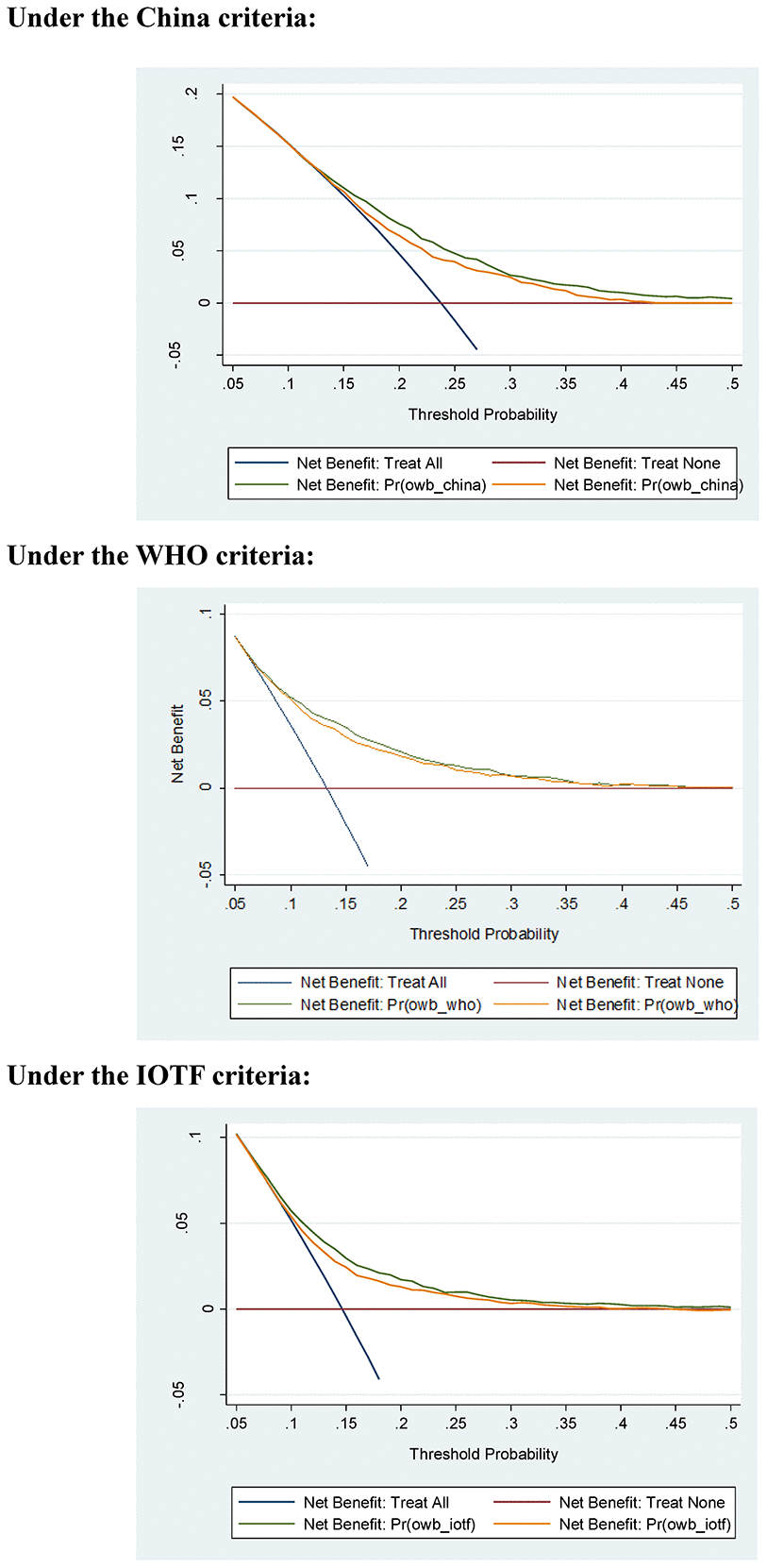 | Variables | China criteria | WHO criteria | IOTF criteria | ||||||||||||||||||||||||||||||||||||||||||||||||||||||||||||||||||||||||||||||||||||||||||||||||