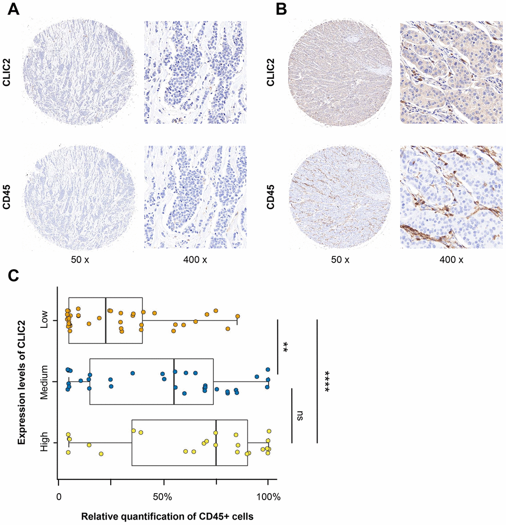 Immunohistochemistry (IHC) analysis revealed correlation between CLIC2 expression and CD45+ cells