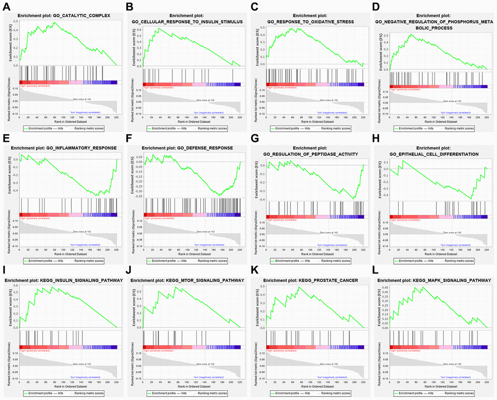 Using the GEPIA database (http://GEPIA.cancer-pku.cn/), Kaplen-Meier analysis of ARGs in risk models was performed. By comparing the immunohistochemical staging images in the human protein atlas database (http://www.proteinAtlas.org/), the protein expression of the selected ARGs was analyzed. On the basis of the staining intensity, it was labeled as undetected, low, medium and high. The cbioProtal database (http://www.cbioportal.org/) was used to further analyze the five ARGs in the risk model to assess changes in copy number and mRNA expression. Perform correlation analysis on the screened ARGs in TIMER database, and calculate the Pearson correlation coefficient between each gene pair. Finally, in order to explore the characteristics and ways of enrichment in the predicted high- and low-risk populations, gene set enrichment analysis (GSEA) was carried out. Using GSEA, this study examined whether the characteristics of activation/inhibition genes were abundant in high-risk and low-risk patients. The enrichment degree of the predefined signature and KEGG path is calculated using standardized enrichment score (NES) and standardized P value. Terms with | NE | > 1 and P < 0.05 are considered to be significantly.
