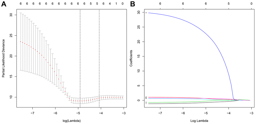 R software (version = 3.5.3) was used for all statistical analysis. Cox regression analysis was used to screen survival-related ARGs. Lasso regression analysis was used to eliminate the highly relevant ARGs and prevent overfitting of the model. Kaplan Meier curve was drawn to show the difference of overall survival rate between the two groups, and the log rank test was carried out to determine the significance of the difference. The ROC curve and the area under the curve (AUC) are used to evaluate the performance of the model. ROC curve was drawn by using the survival ROC package in the R software. The AUC value greater than or equal to 0.70 is the effective prediction value, and the AUC value greater than or equal to 0.6 is the acceptable prediction value. Statistical significance was defined as P < 0.05.