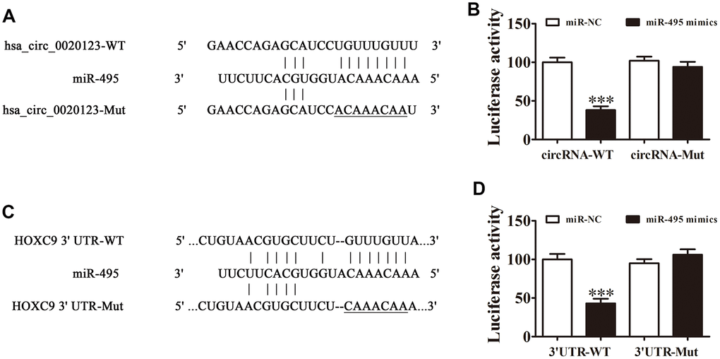 Interactions of hsa_circ_0020123, miR-495, and HOXC9