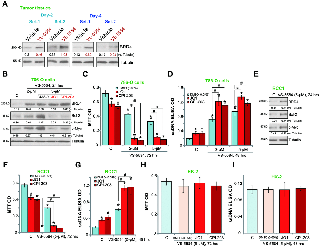 In summary, VS-5584 potently inhibits RCC cell proliferation and survival. Its anti-tumor activity is further enhanced by the targeted inhibition of BRD4.