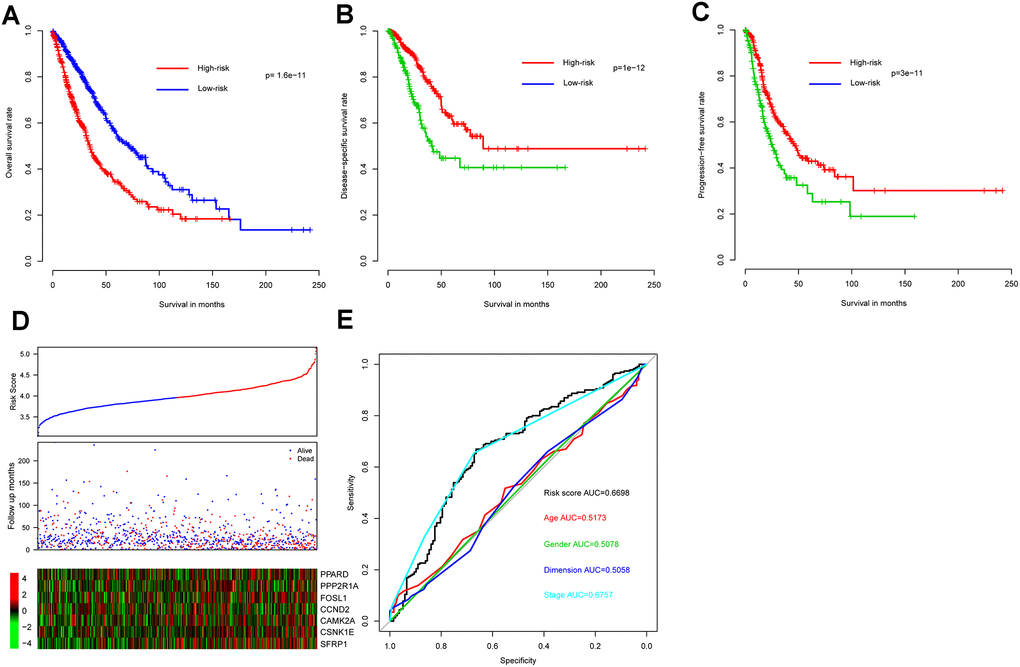 Results indicate that risk score performs favorably and is independent of existing clinical indicators, at least one treatment modality, and clinical as well as pathological disease subtypes.