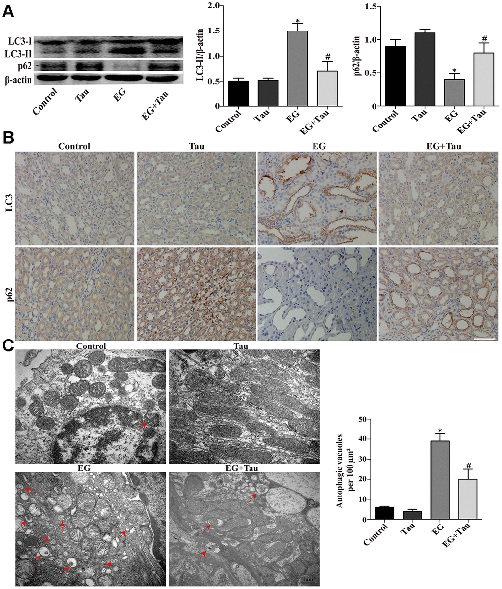 Tau ameliorates EG-induced renal injury and CaOx crystal deposition in rat kidneys