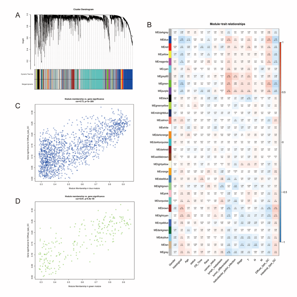 Our study has several limitations. There was not enough sample size due to the small percentage of diffuse type GC in all GC. As a retrospective study, the patient cohort was heterogeneous, and the significance and robustness of the results and hub genes in the prognostic assessment should be validated in prospective cohorts.