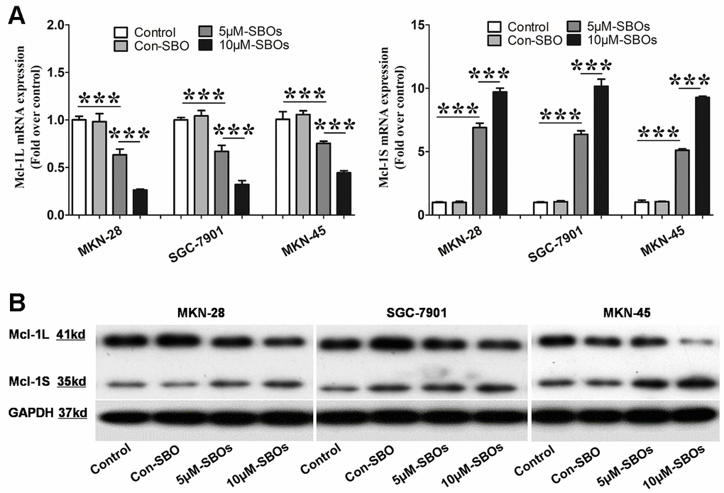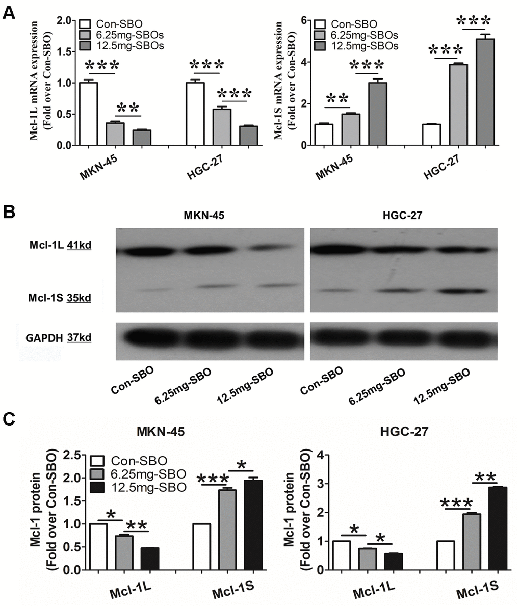 Modification of Mcl-1 pre-mRNA alternative splicing using steric-blocking oligonucleotides (SBOs) in GC cell lines