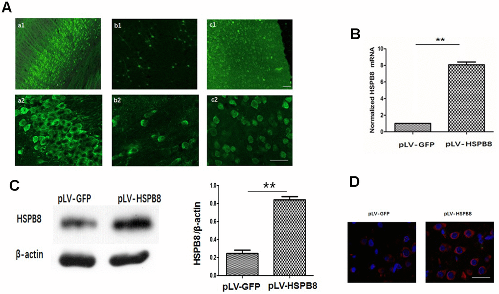 Effect of intracerebroventricular (i.c.v) injection of pLV-HSPB8 on the expression of HSPB8 in brain