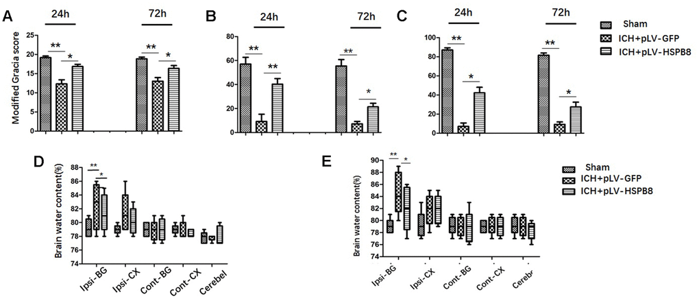 HSPB8 overexpression improved behavioral deficits and restrained cerebral edema at 24 and 72 h after ICH
