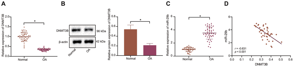 A negative correlation between DNMT3B and miR-29b expression was identified in patients with OA