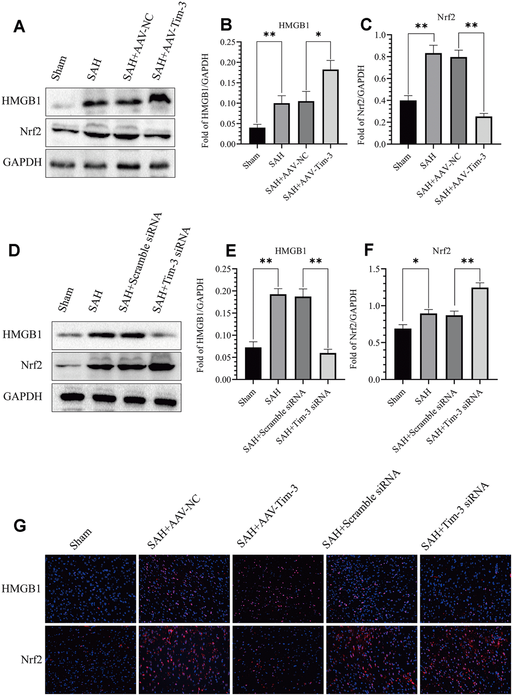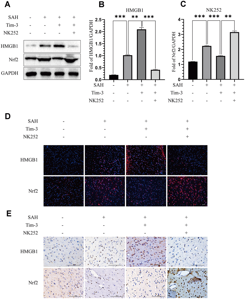 Effect of Tim-3 on Nrf2 and HMGB1 expression and distribution after SAH