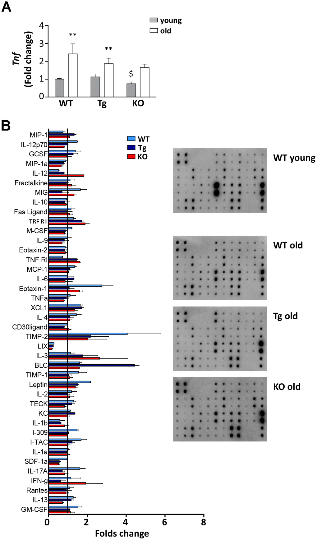 Inflammation markers in old WT, Tg, and Ghrl KO mice