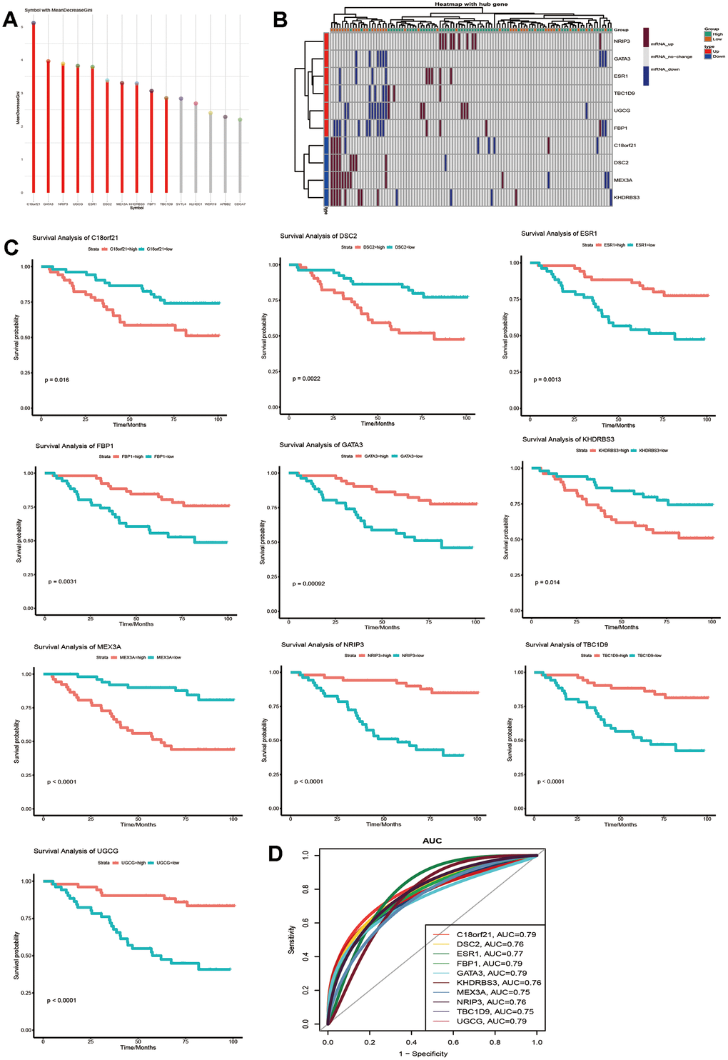 On the other hand, breast cancer is a complex and heterogeneous disease. In the past few decades, gene expression, methylation and mutation analyses have led to significant findings, which can increase the accuracy of prognoses of clinically relevant patients [31–33]. In addition to the discovery of gene expression, identifying differences in gene methylation was also a focus of this study. MEX3A and TBC1D 9 were methylated and affected the prognosis of breast cancer. In line with other studies, MEX3A expression increased in breast cancer patients [34]. MEX3A showed low expression in breast cancer patients with long survival, which may be related to methylation modifications. In addition, consistent with our results, the high expression of TBC1D 9 reduced the mortality of breast cancer patients and prolonged their survival time [35]. Although the mechanism of TBC1D 9 in breast cancer is not clear, it is significantly correlated with ESR 1, which is a risk factor for breast cancer [36].
