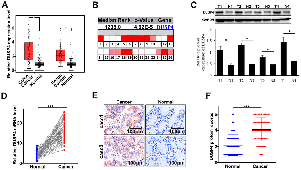 DUSP4 gene was highly expressed in colorectal cancer tissue
