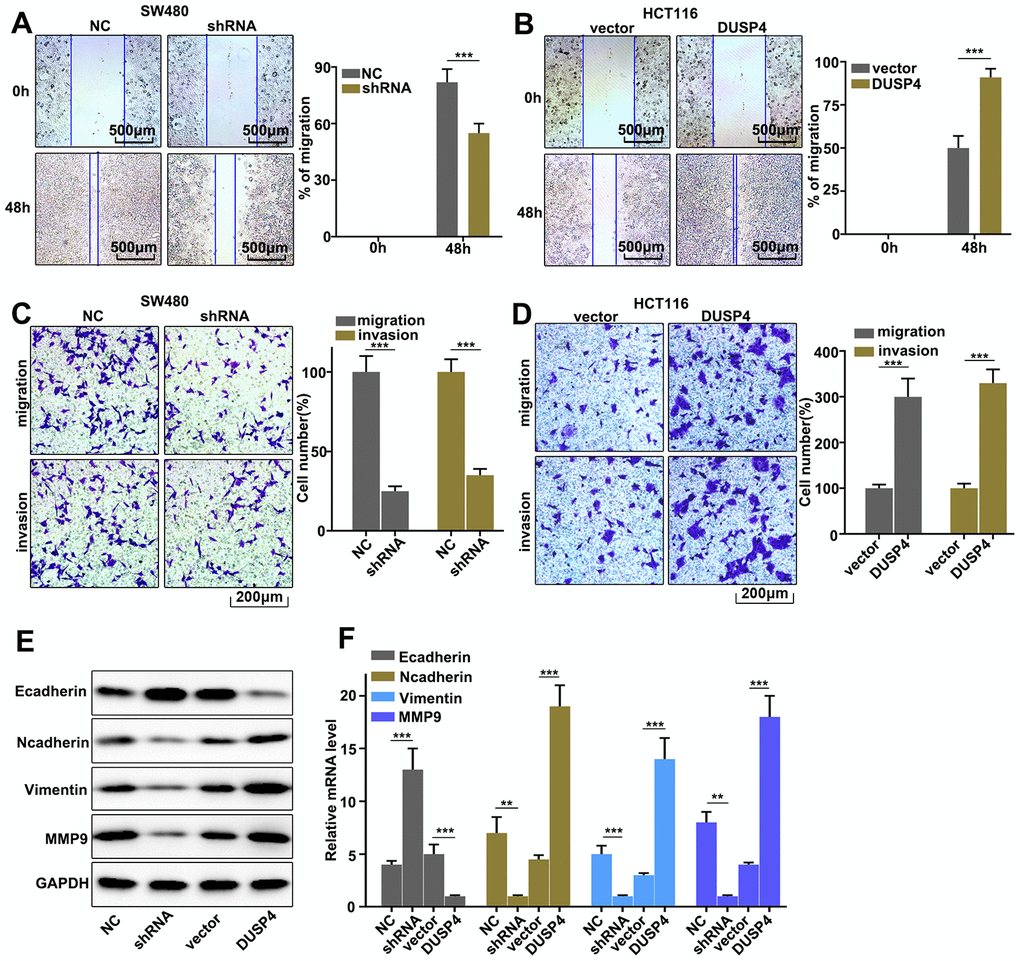 Regulation of DUSP4 on colorectal cancer cell migration and invasion