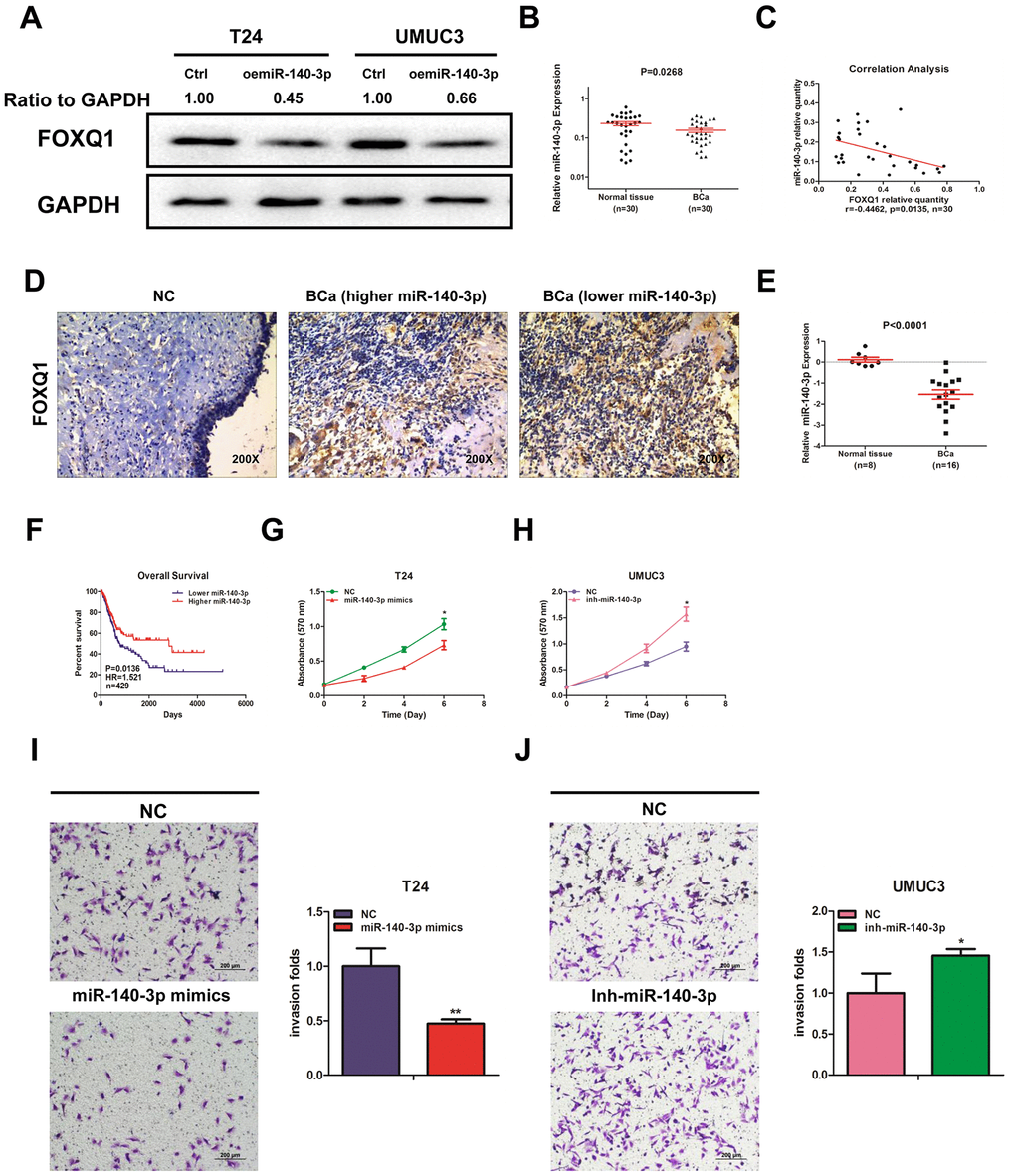 miR-140-3p downregulates FOXQ1 expression and suppresses BCa cell proliferation and invasion