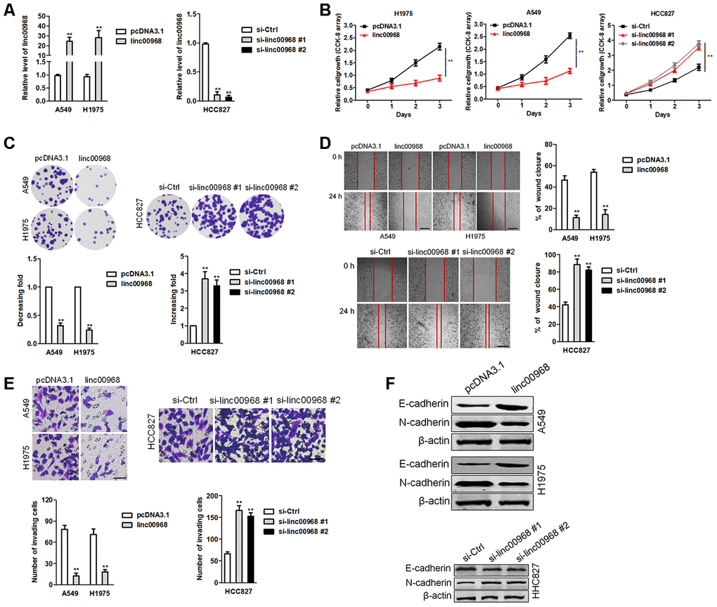 Effects of linc00968 on lung cancer cell growth, migration and invasion