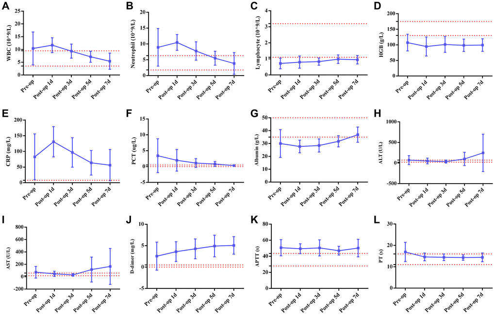 | Abbreviations: ALT, alanine aminotransferase; AST, aspartate aminotransferase; APTT, activated partial thromboplastin time; PT, prothrombin time; HGB, hemoglobin; WBC, white blood cell; CRP, C-reaction protein; PCT, procalcitonin. | |||||||||||||||||||||||||||||||||||||||||||||||||||||||||||||||||||||||||||||||||||||||||||||||||||