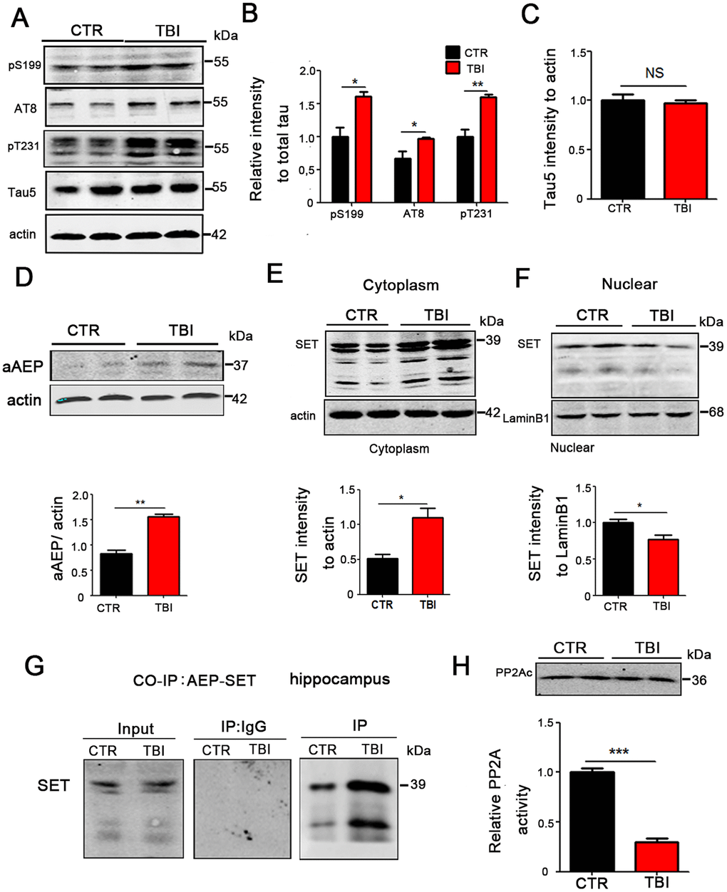 TBI caused tau hyperphosphorylation and cytoplasmic retention of SET accompanied by AEP activation