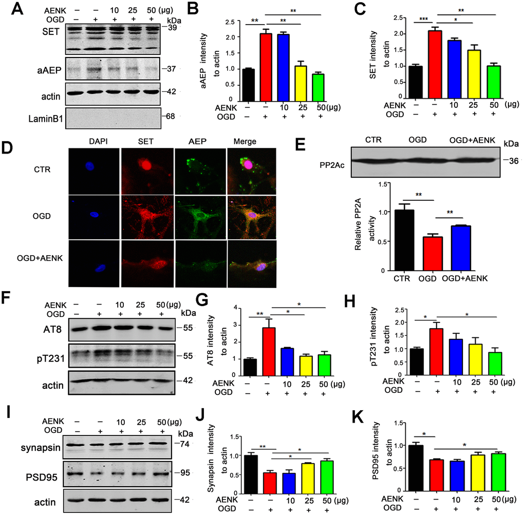 AEP inhibitor blocked OGD-induced cytoplasmic retention of SET, thereby reducing tau phosphorylation and alleviating the loss of synaptic proteins in hippocampal neurons