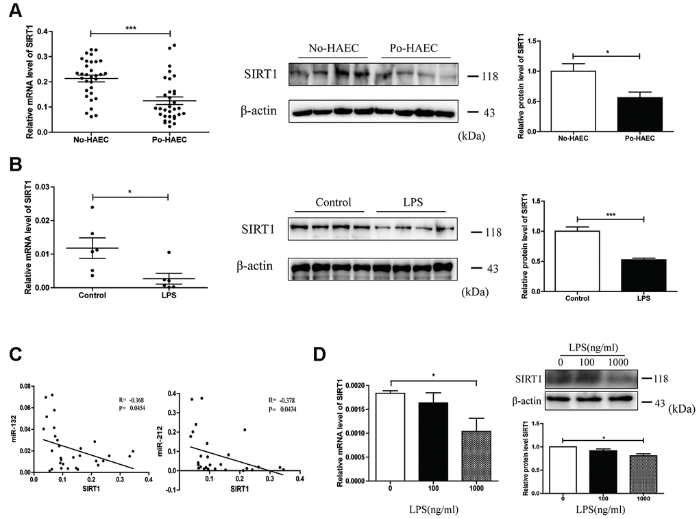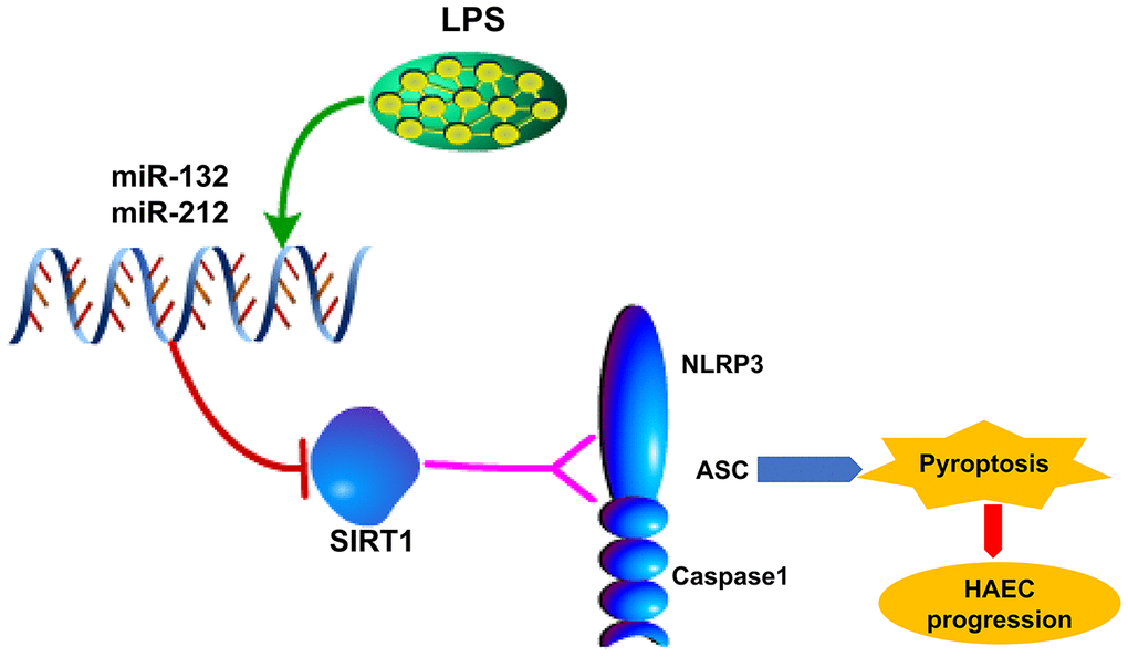 The formation of excessive inflammatory response may be the key to the occurrence and further deterioration of HAEC. Interestingly, LPS can mediate cell pyroptosis through a non-classical cell pyroptosis pathway, which plays an important role in intestinal inflammation [13]. What’s more, LPS can also indirectly activate NLRP3-Caspase-1 inflammasome and release active pro-inflammatory cytokines (IL-1β and IL-18) [14]. However, how does LPS mediate cell inflammation in HAEC? Recent evidence indicated that the expression of miR-132/-212 was significantly elevated in LPS-treated macrophages and human bronchial epithelial cells [15, 16], and LPS can also participate in the inflammatory response by regulating miR-132/-212 [17]. Interestingly, Sirtuin 1 (SIRT1), the common target gene of miR-132 and miR-212, is closely related to cell pyroptosis and inflammation [18]. Therefore, this study innovatively proposed a new molecular pathway in which LPS mediates pyroptosis indirectly, and aimed at defining the pathophysiological role of LPS/miR-132/-212/SIRT1 in HAEC.