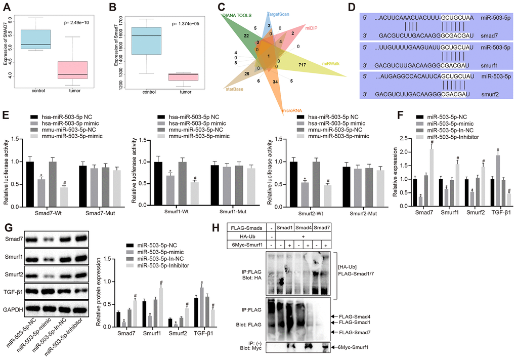 miR-503-5p downregulated smad7, smurf1/smurf2 and reduced the ubiquitination of TGF-β1 receptor