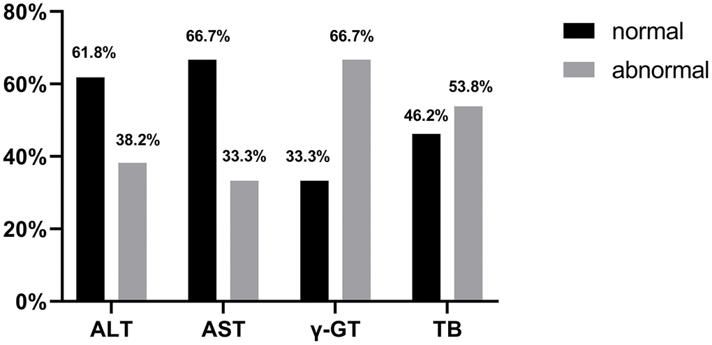 Table 2. Risk factors for liver injury in the normal and abnormal liver function groups.