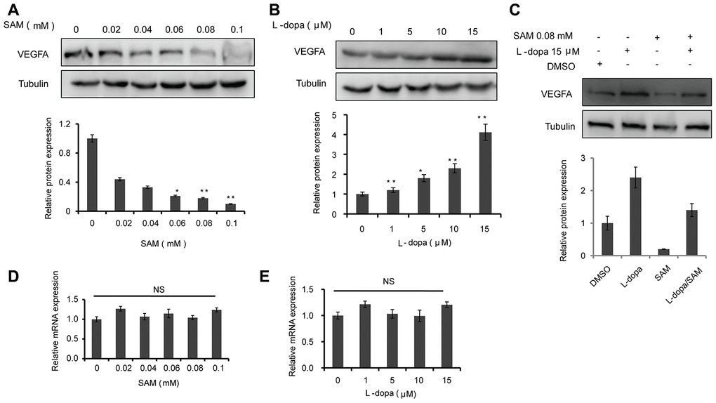 Differential effect of L-dopa and SAM on the VEGFA level in HUVECs
