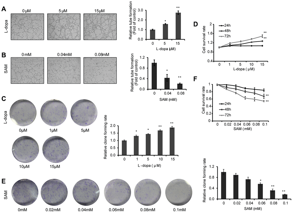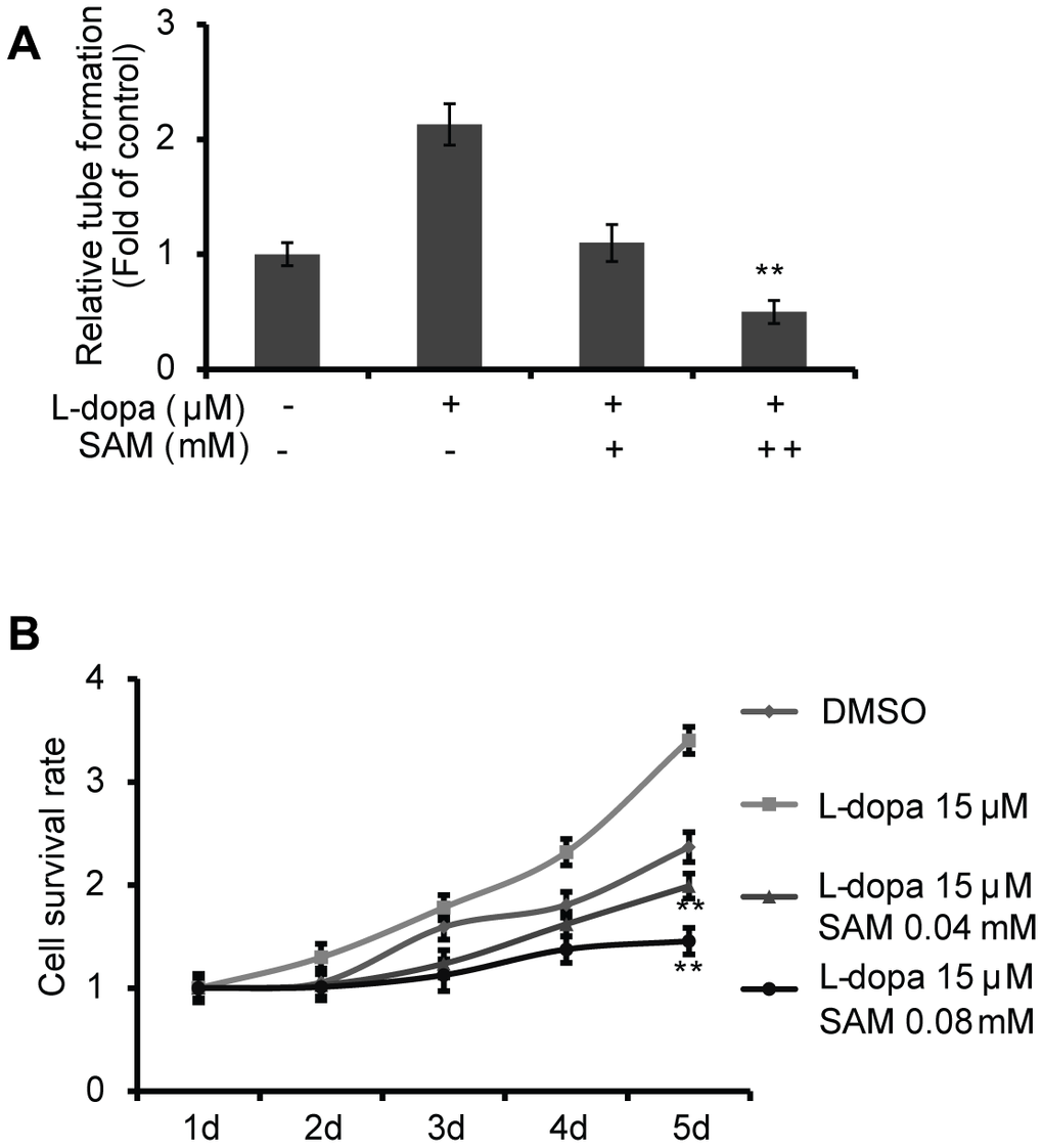 However, whether SAM intake blocks the pro-angiogenic ability of L-dopa is still not yet interpreted clearly. To address this hypothesis, we mainly used the primary cultured and immortalized HUVECs to study the detailed roles of SAM on L-dopa-induced VEGFA expression and tube formation.