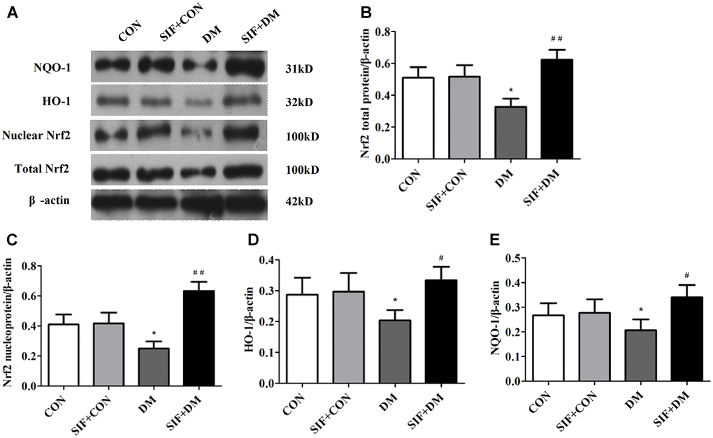 Effects of SIF on the diabetes-induced changes in n-Nrf2, Nrf2, HO-1, and NQO1