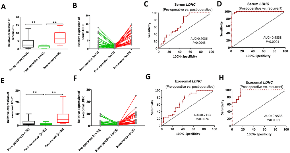 Values of serum and exosomal LDHC in efficacy evaluation and recurrence monitoring