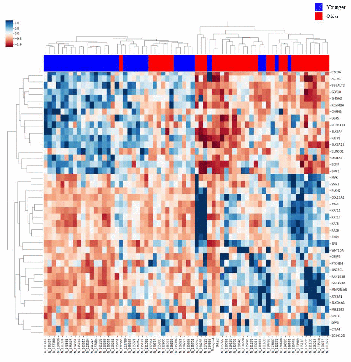 Table 2. Top 10 genes with increased expression (based on fold change) in the younger group compared with the Older group.