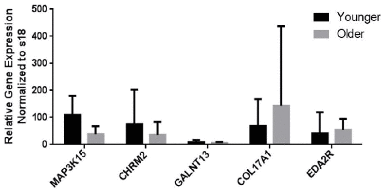 Table 3. Top 10 genes with increased expression (based on fold change) in the Older group compared with the younger group.